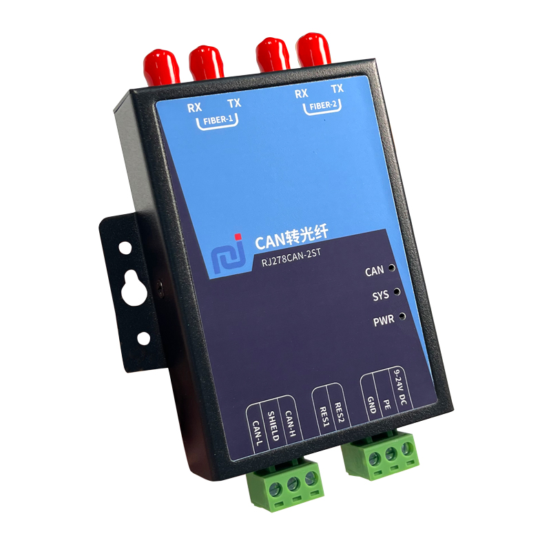 RJ278CAN 系列模块可以将 CAN 总线数据转换成光信号通过光纤传输。通 过成对使用 RJ278CAN 系列模块,用户可以轻松的延长 CAN 总线通信距离、有 效的消除长距离通信干扰,可以防止总线受到电磁干扰、地环干扰、雷击等对总 线和设备造成的损坏。